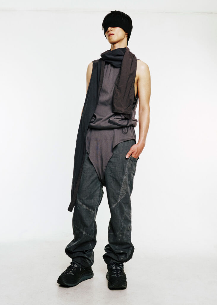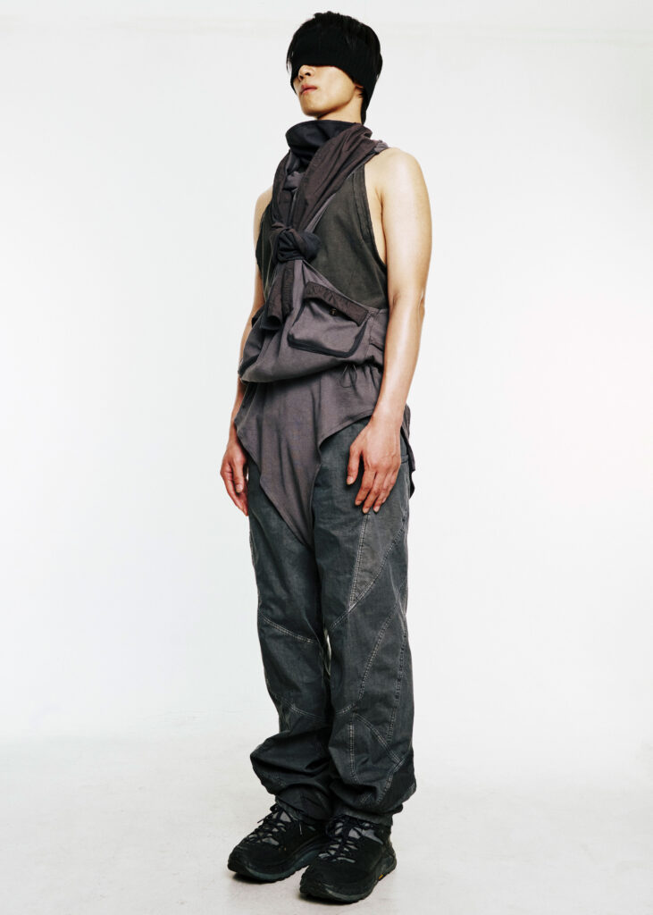 “변태하다”는 껍질을 깨고 한층 더 성장한 존재로 나아가는 행위다. 쉽게 말해서 변태는 ‘나’를 거두던 경계를 부수고,내가 누구인지 더 자유롭게 보여주는 과정이다. 성장의 여정을 담은 이 컬렉션을 ‘변태’의 과정에 빗대어 구성했다. 외부로부터 부여된 틀과 억압된 자아, 날개를 펴는 순간까지의 흐름을 담았다.